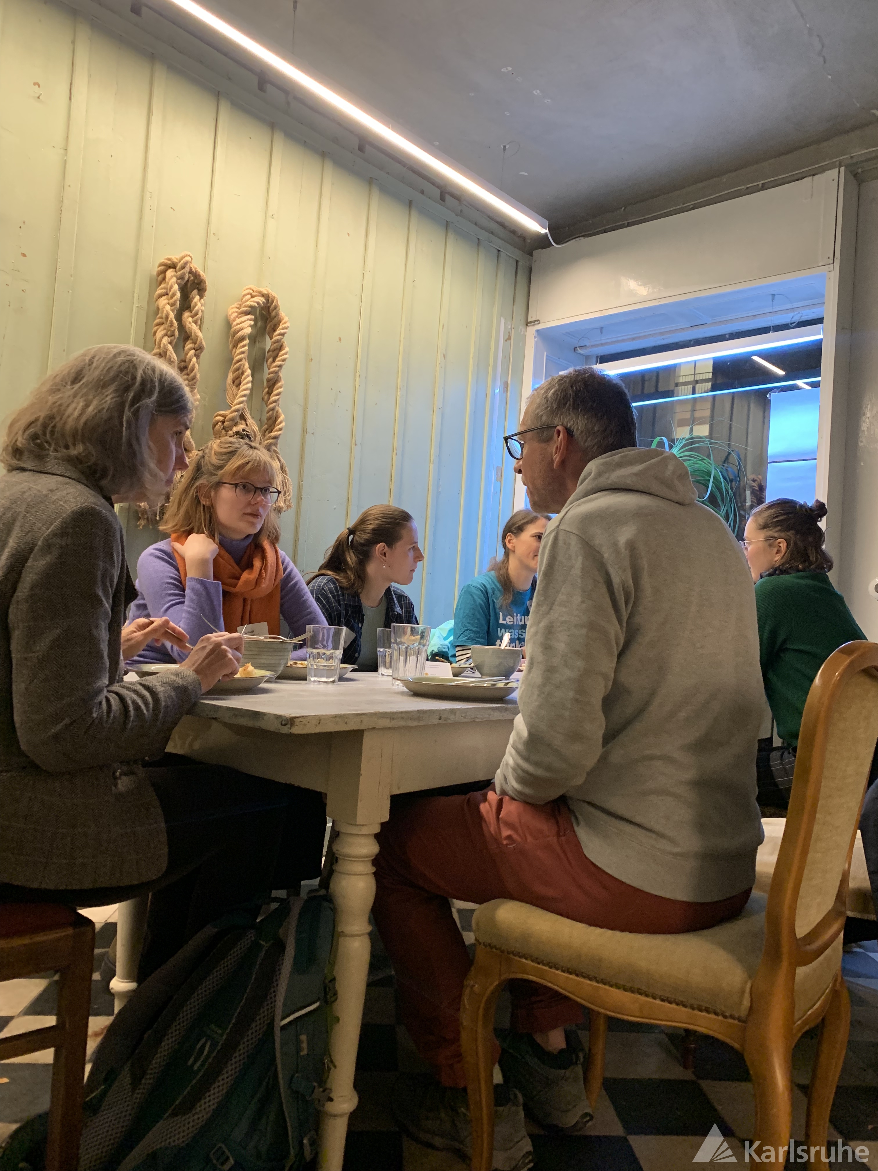 Als idealer Ort, der die Vision der KA°-Community widerspiegelt, fand das Treffen in der Kulturküche statt – einem kreativen Begegnungsort mitten in Karlsruhe, der Menschen zusammenbringt und zur gemeinsamen Gestaltung einer nachhaltigen Zukunft inspiriert. Bei leckerem, veganem Essen aus regionalen Zutaten und den sanften Klängen eines Handpan-Spielers konnte in entspannter Atmosphäre gemütlich genetzwerkt werden.