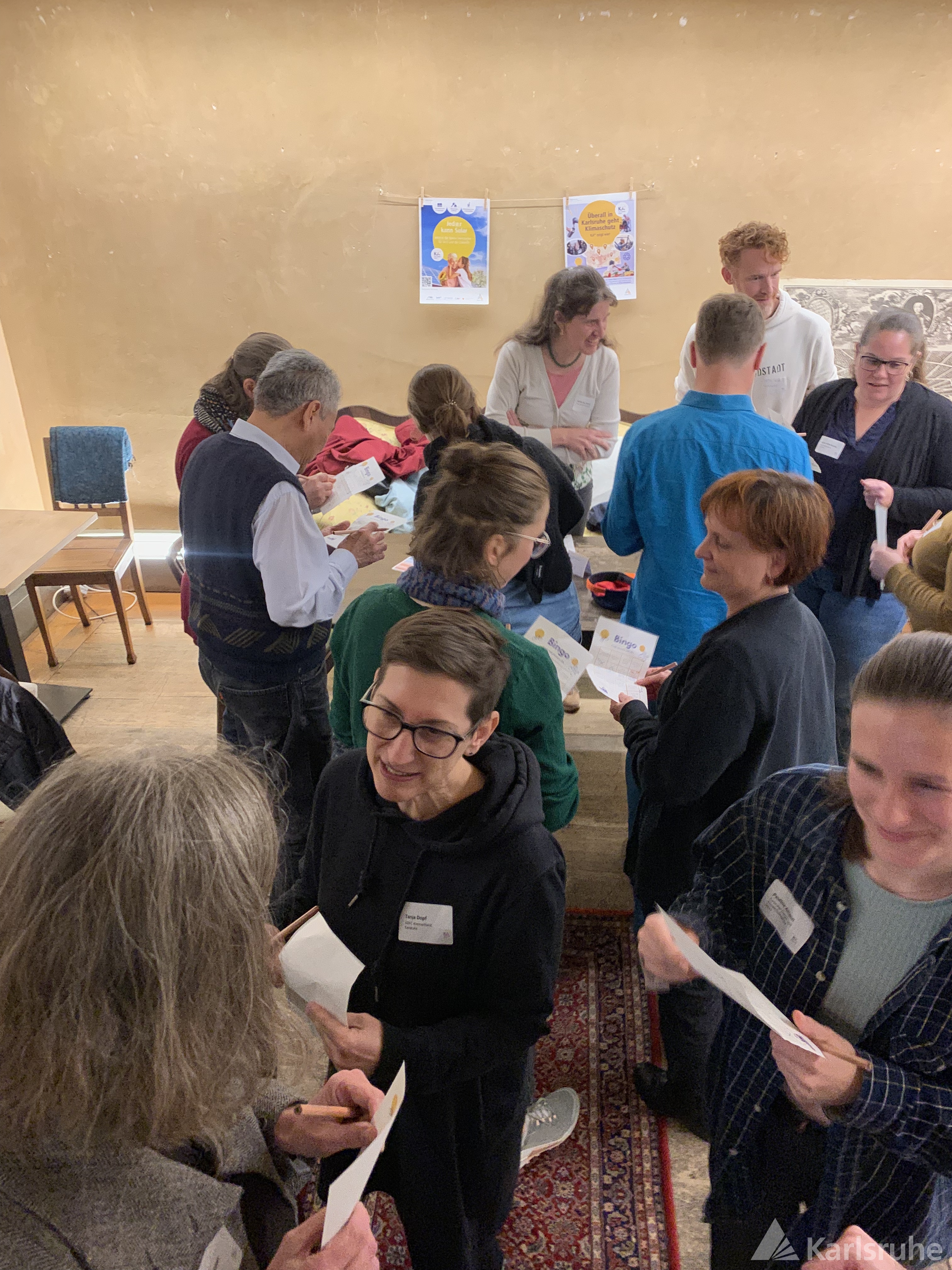 Bewusst wurden nur wenige Programmpunkte gesetzt. So gab es lediglich einige kleine Anregungen, um leichter ins Gespräch zu finden: Zum Beispiel beim Speed-Networking tauschten die Teilnehmenden sich über ihre Lieblings-Klimaschutzorte in Karlsruhe aus. Und das Kennenlern-Bingo erwies sich als so unterhaltsam, dass nach der Siegerehrung einfach weitergespielt wurde. Am Ende waren sich eigentlich alle einig, dass es dieses Event auch in Zukunft geben soll.